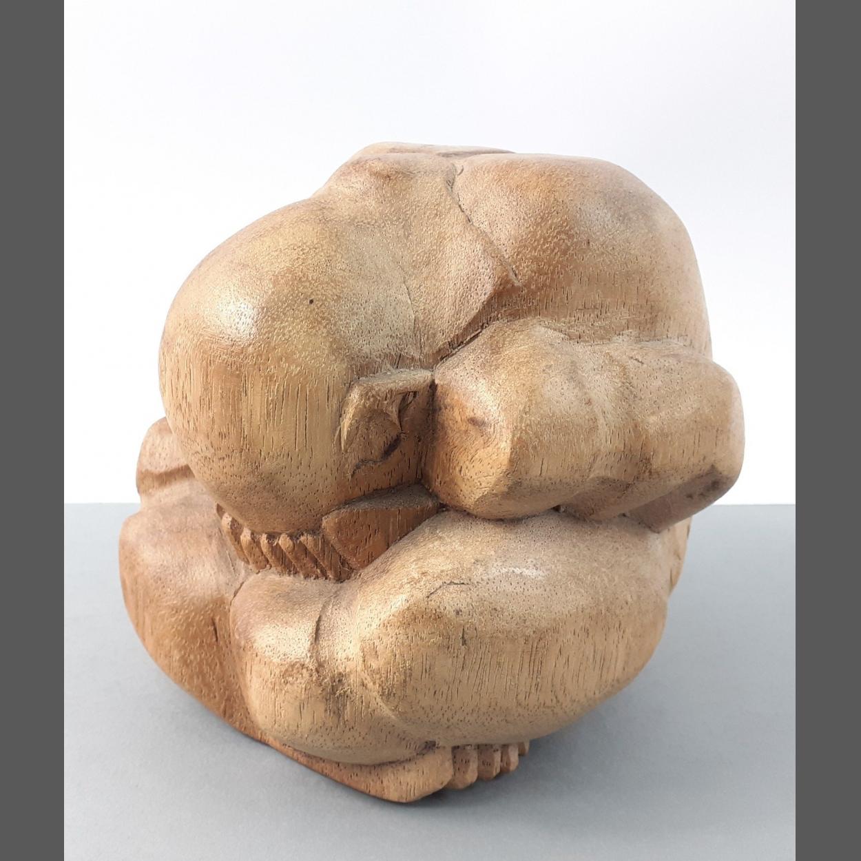 Vintage solid wood 'Weeping Buddha' design hand carved sculpture. 12cm high approx.