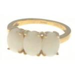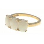 A gold ring with a TGGC 9K stamp and full hallmarks with 3 pretty opals, size K, gross weight 2.05g approx