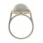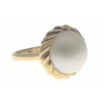A 9K marked gold ring with large domed white stone, size M, gross weight 3.1g approx