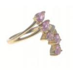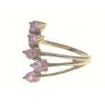 A 9K gold ring with 5 teardrop pink stones, size M, gross weight 2.92g approx