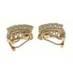 A pair of 375 stamped gold clip-on earrings each set with 10 oval cut peridots and 4 small central diamonds each earring 18mm approx, gross weight 7.3g approx