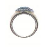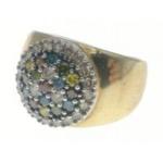 A faintly stamped 375 gold ring with a pretty cluster of coloured stones including 3 diamonds with a surrounding band of 20 small diamonds (tested), size F, gross weight 2.9g approx