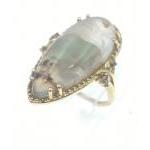 A 9K marked gold ring with large teardrop shaped polished hard stone (25mm approx), size J/K gross weight 5.62g approx