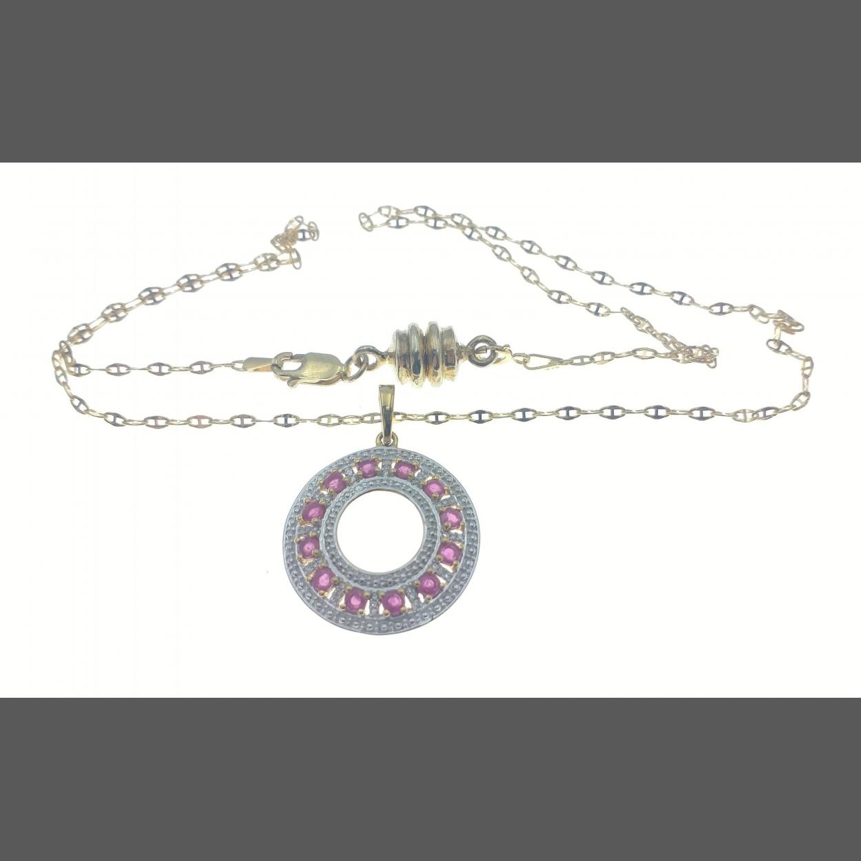 A lovely pendant necklace, chain is stamped 417 (10K gold), approx 40cm long with a short 925 extension, pendant (25mm approx) is stamped 375 set with red stones and small diamond chips, gross weight 3.5g approx exc. silver extension.