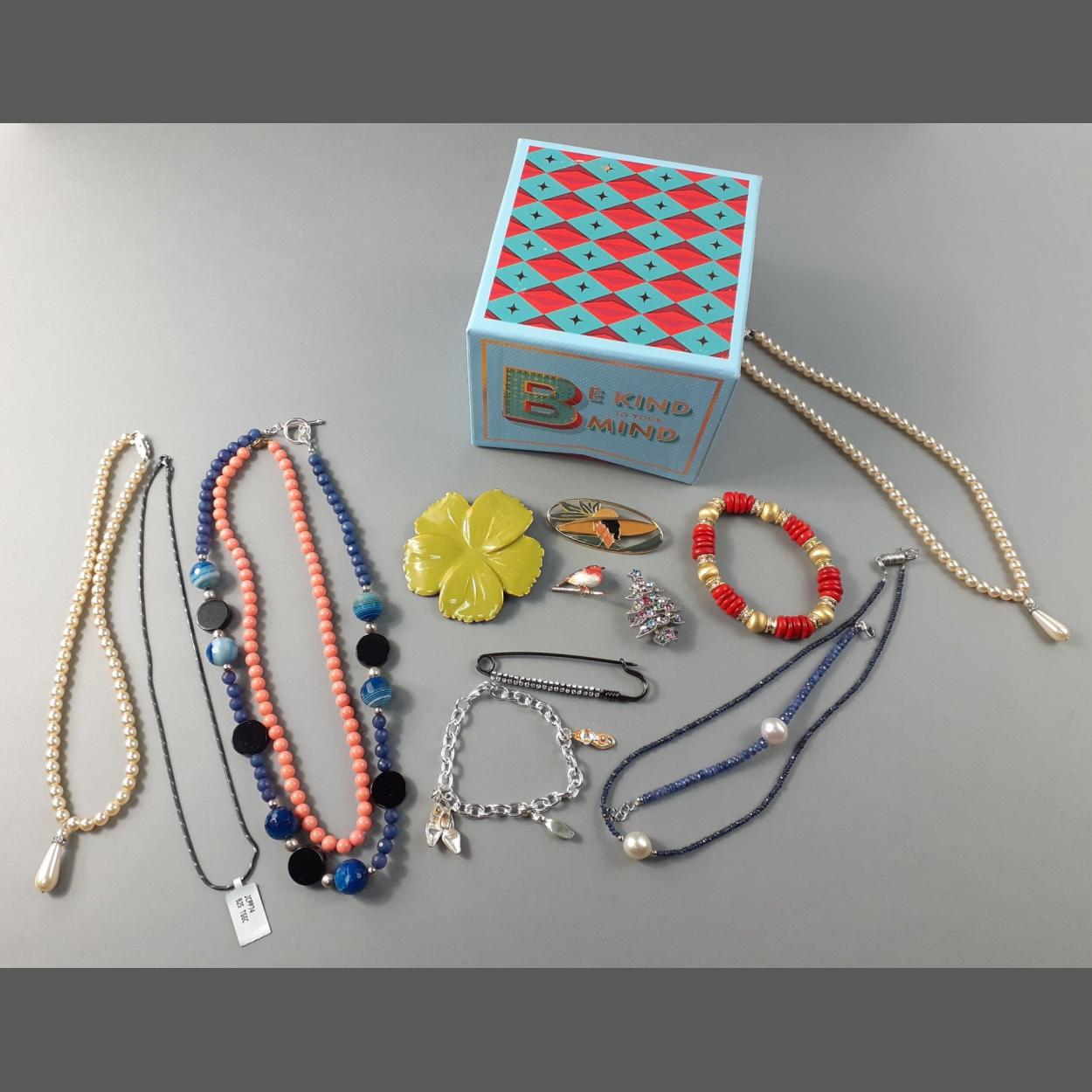 A small collection of costume jewellery to include necklaces, brooches, beads etc
