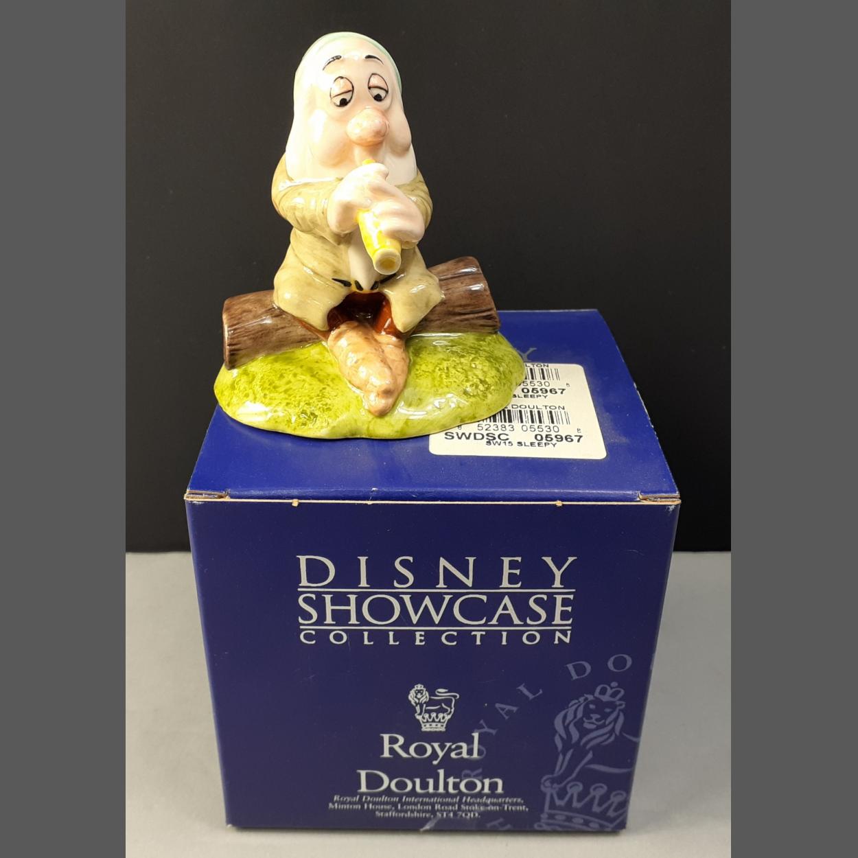 ROYAL DOULTON DISNEY SHOWCASE Snow White SLEEPY pottery figurine still in original box and in good condition with no cracks, damage repair or chips noted - dimension height 8cm approx