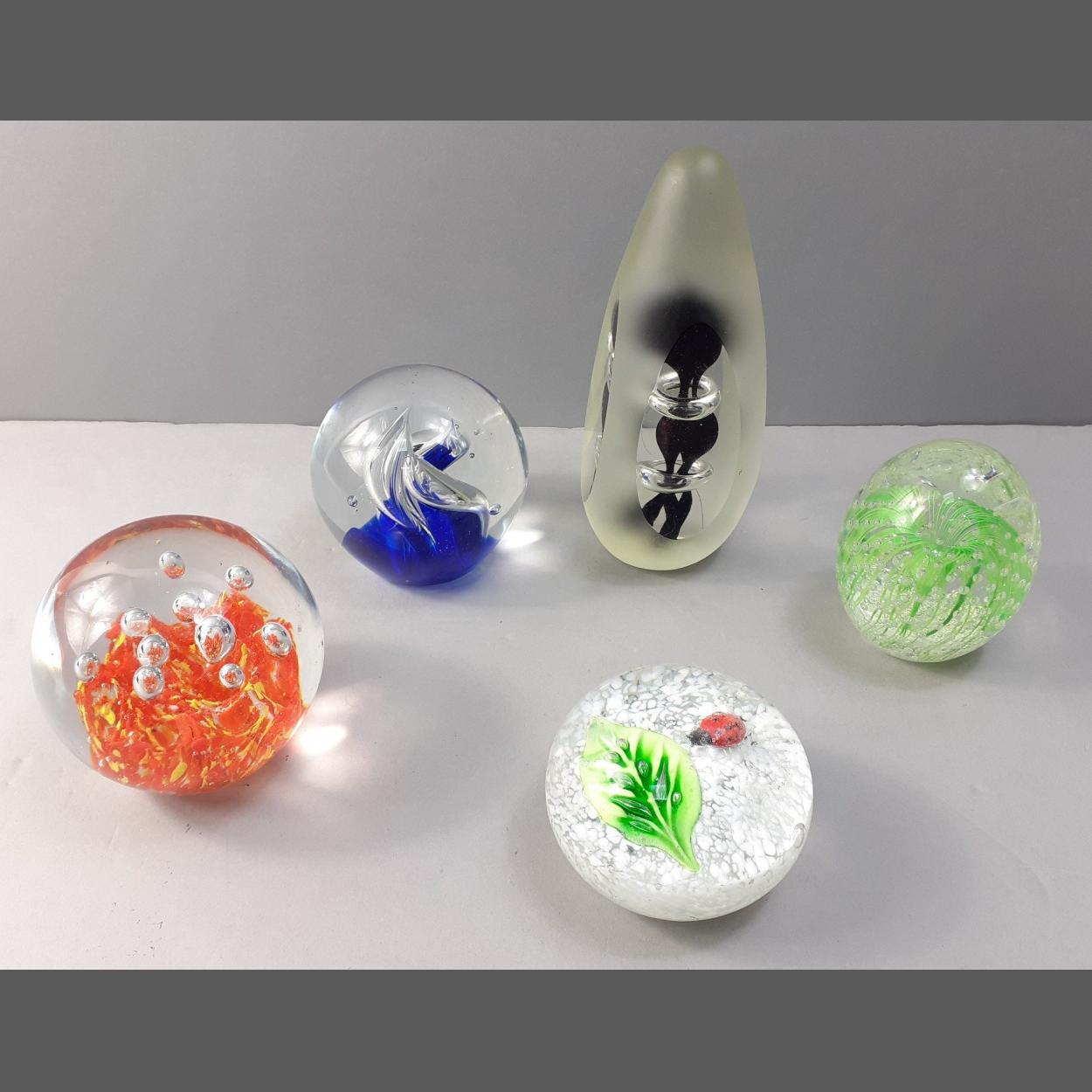 A collection of five heavyweight glass paperweights, tallest 18cm