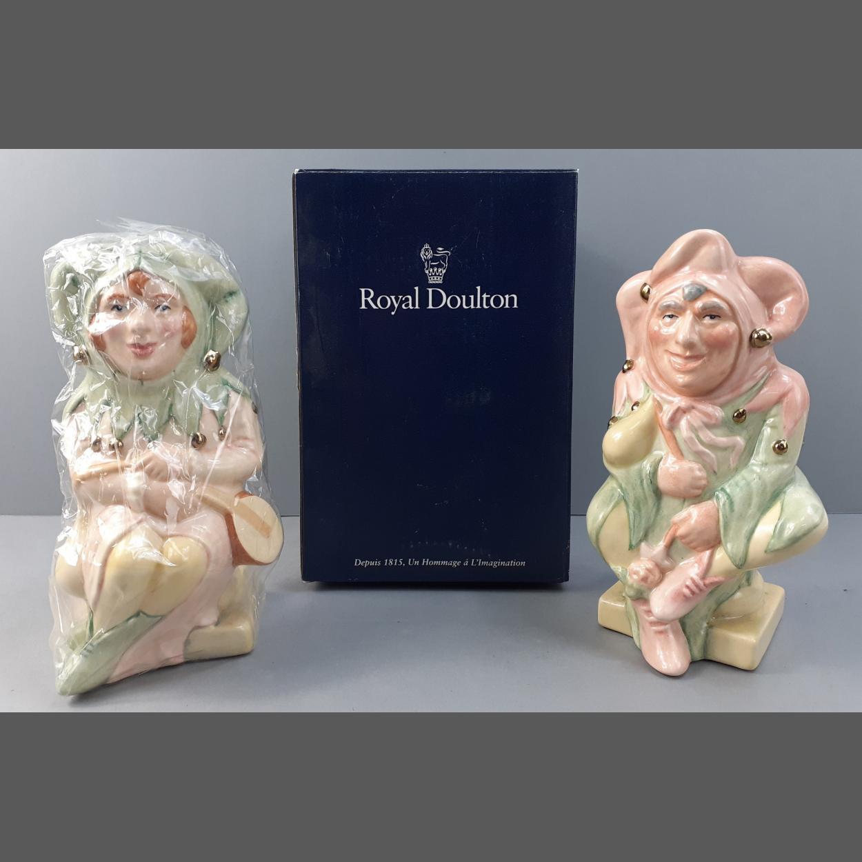 ROYAL DOULTON LADY JESTER model No D7110 still in original box and wrapper! - dimension 15.5cm tall approx - no damage repair, cracks or chips noted with the accompanying JESTER D7109 No 400 - no box and in well cared for condition