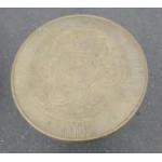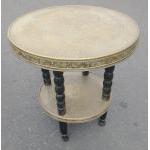 An unusual antique Chinese 2 tiered brass-topped table supported on 4 turned legs, H2ftxD18" approx