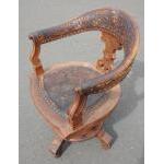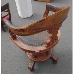 A fabulous Victorian oak ship's swivel chair with hand-tooled leather back and seat. FANTASTIC PATINA - Isn't it just fabulous!!