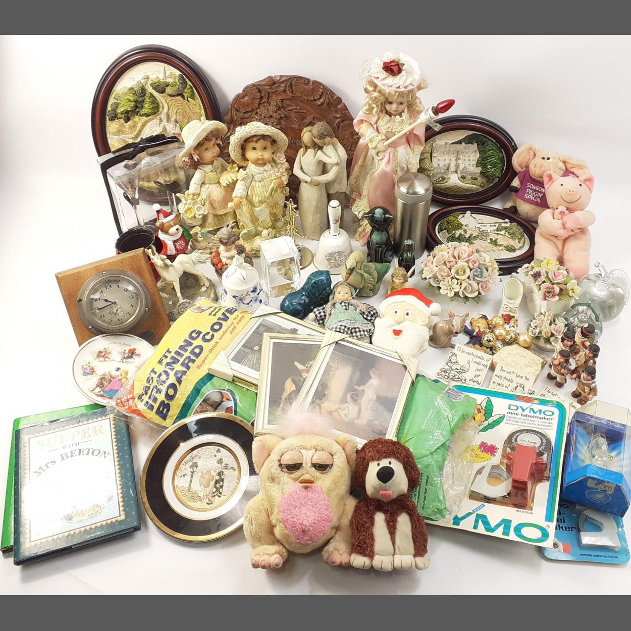 A mixed lot to include decorative items including Willow Tree Together, dolls, teddies, wall plaques and a whole lot more