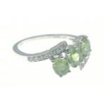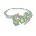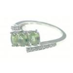 A 10k stamped (9ct hallmarked) white gold ring set with three green stones and white stones on shoulders size M, gross weight 2.35g approx