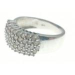 An 18ct hallmarked white gold ring set with 5 rows of small diamonds (tested), size L, gross weight 5.85g approx