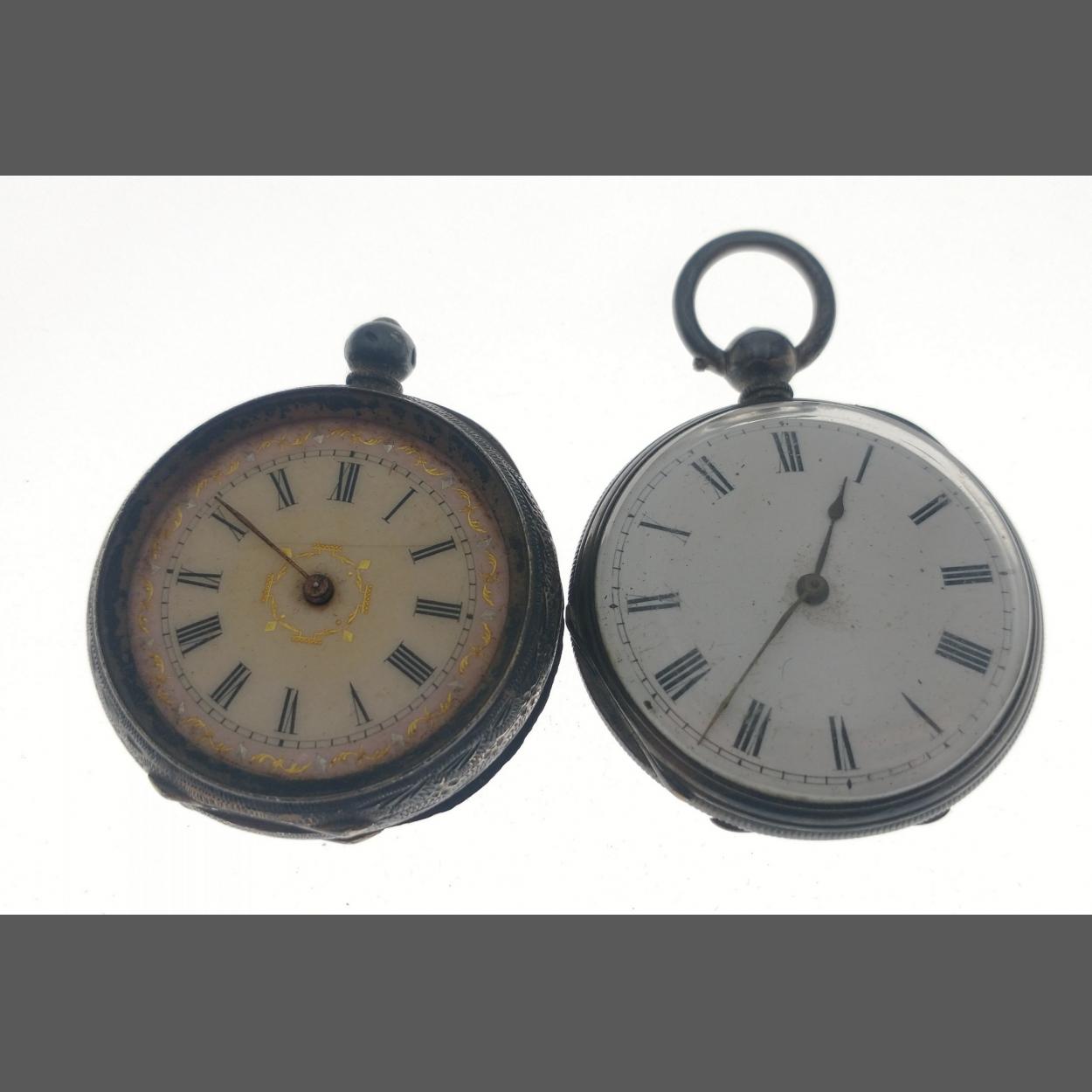 Two silver pocket watches one stamped fine silver (gross weight 42.71g approx) and the other .935 without glass (39.85g approx )