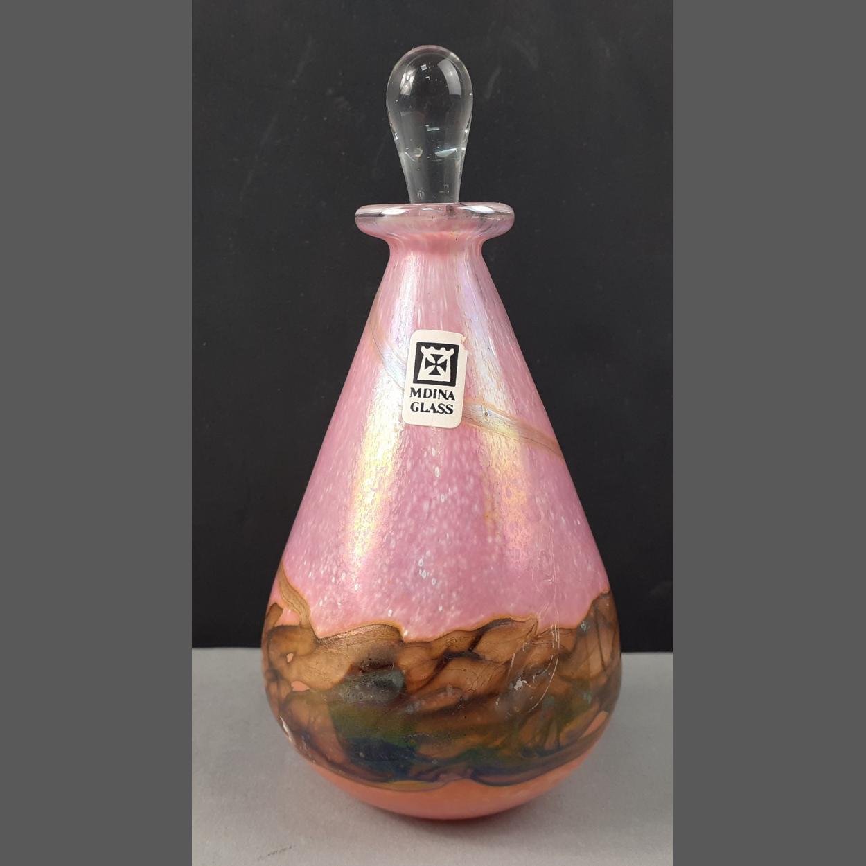 A lovely MDINA GLASS lustrous pink and gold perfume bottle with stopper standing 13cm approx. No damage