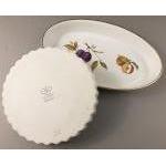Two ROYAL WORCESTER oven to table porcelain dishes. The flan dish in EVESHAM pattern 21cm diameter. The oval 32cm across.