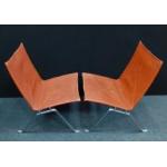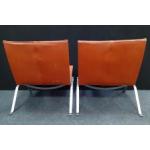 Two CHIC FRITZ HANSEN PK22 armless light tan and stainless steel leather covered chairs - slight wear in areas - a stunning edition to your home!