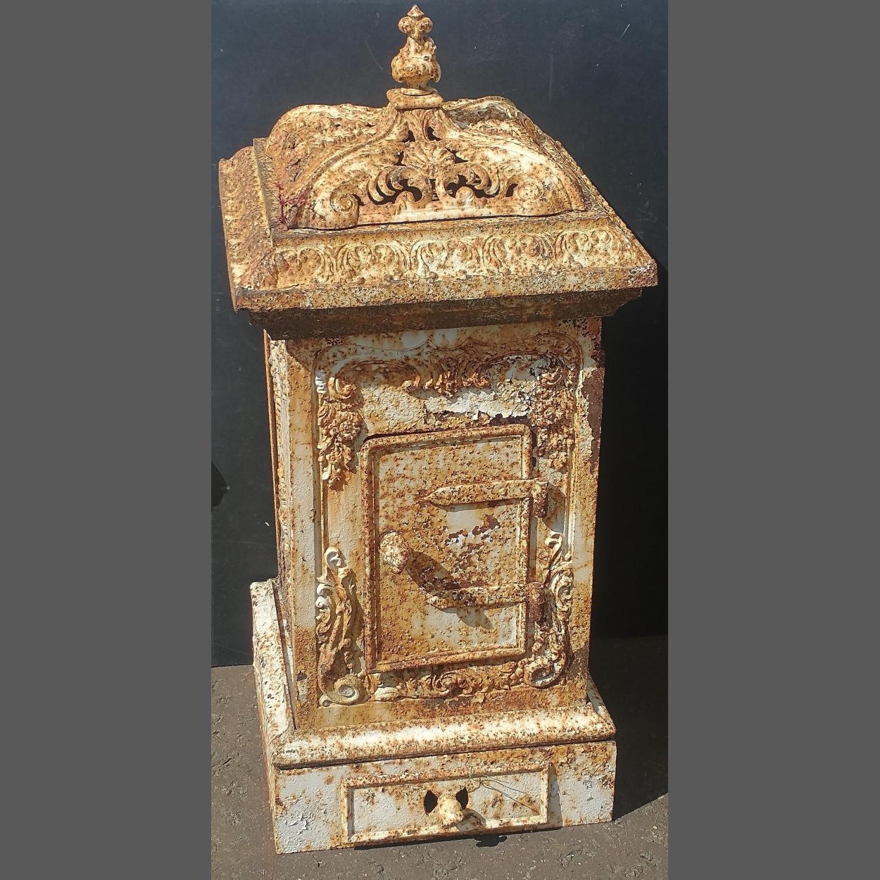 A rare and SUBSTANTIAL VICTORIAN greenhouse heater. Stands 115cm to top of finial, W50xD50cm. A great character object. - this items dis-assembles into 8 or so pieces
