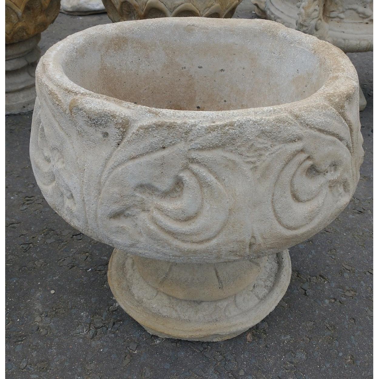 A round planter with external decor of leaves, 40cm high - this is a new item