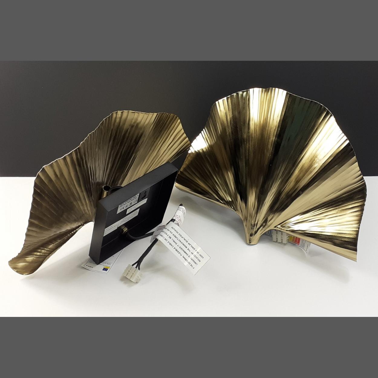 Two unused brass coloured metal clam shell-shaped wall light fittings W38cm x H 28cm approx
