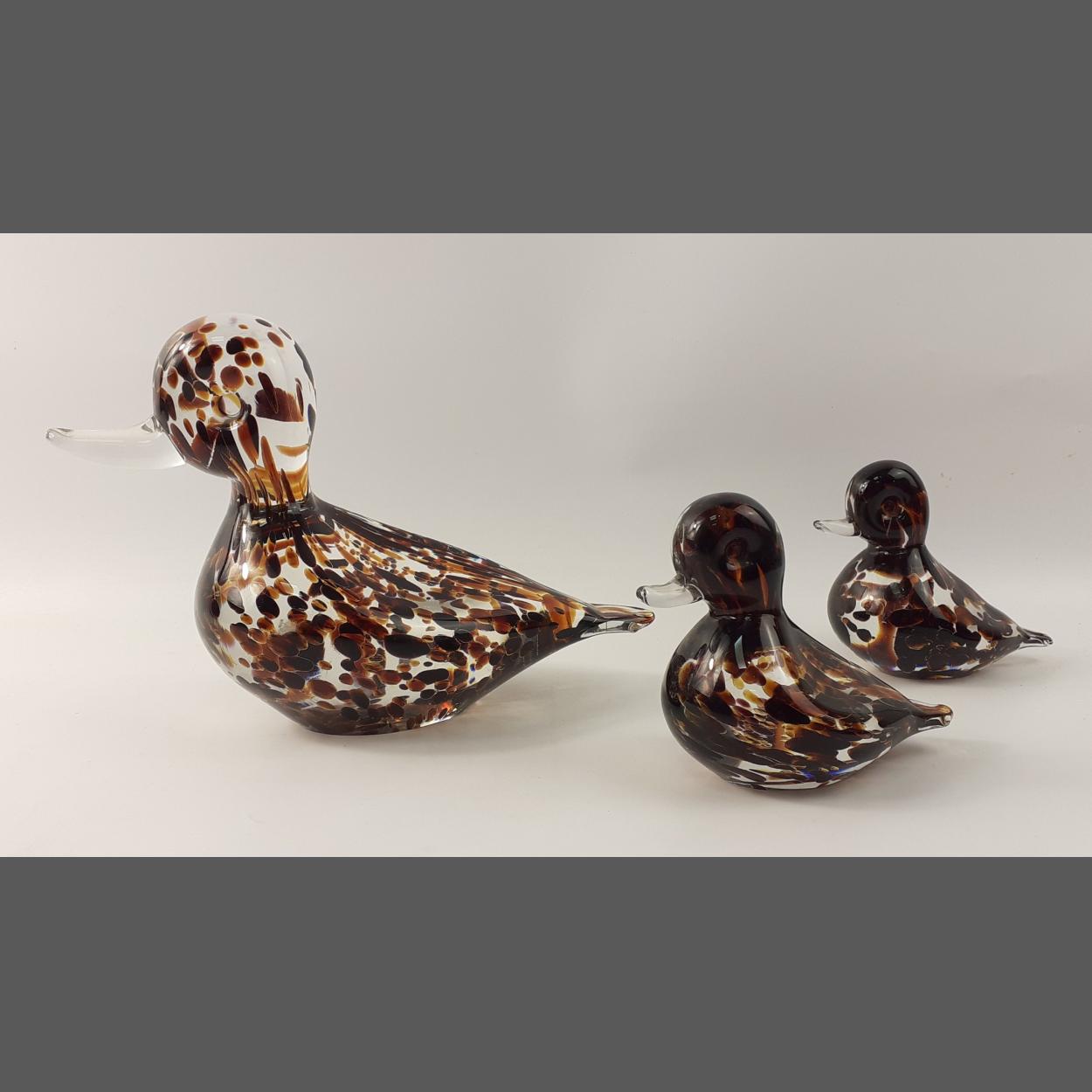 A Quacking good family group of LANGHAM GLASS ducks. The largest 26cm across and all in good condition and retaining original factory labels.