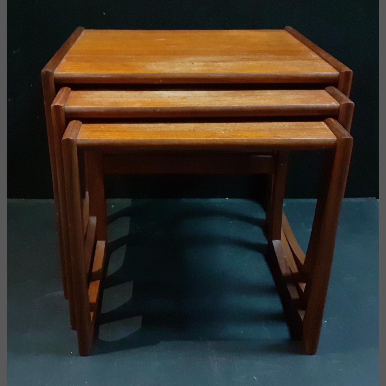 A nest of three mid-century teak side tables, probably G-Plan, largest W54xD42xH50cm approx. In overall good condition