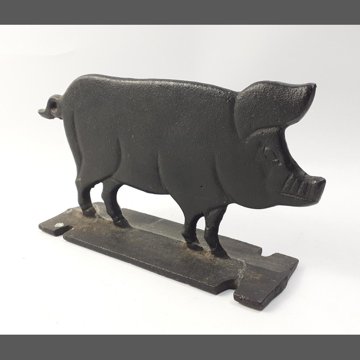 OINK OINK! A hefty cast iron pig-shaped novelty foot scraper 22cm length x 15cm high approx