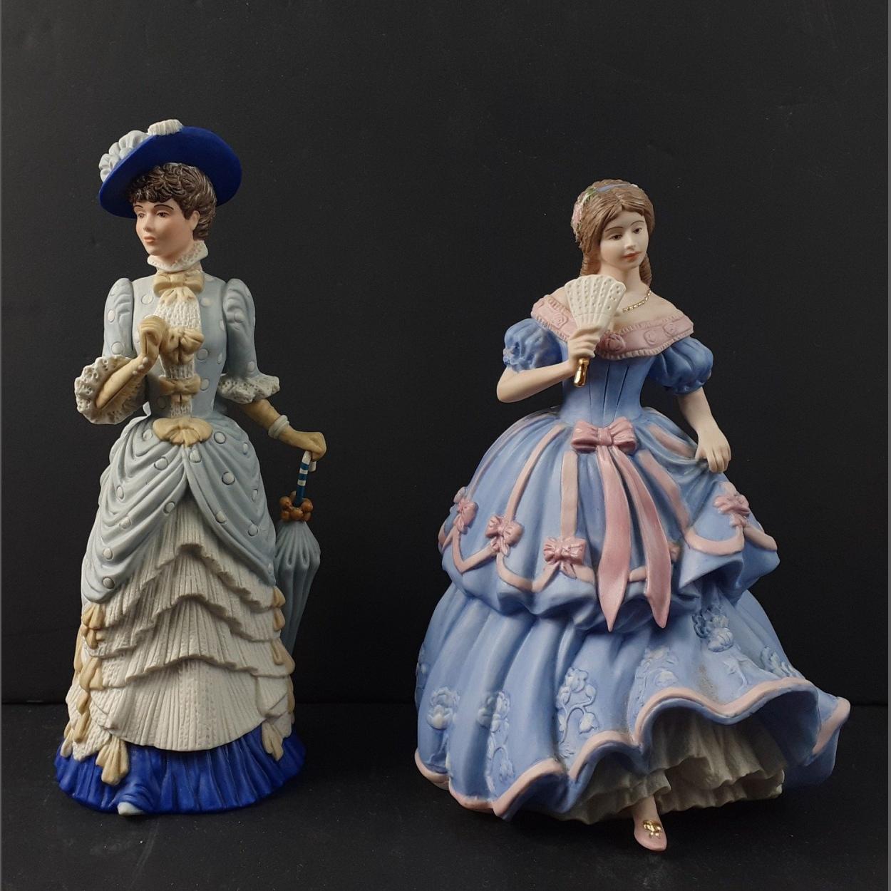 Two WEDGWOOD ladies - The Imperial Banquet 1855 commissioned by Spink in good condition 19cm tall and The Golden Jubilee 1877 commissioned by Spink 21cm, has been repaired.