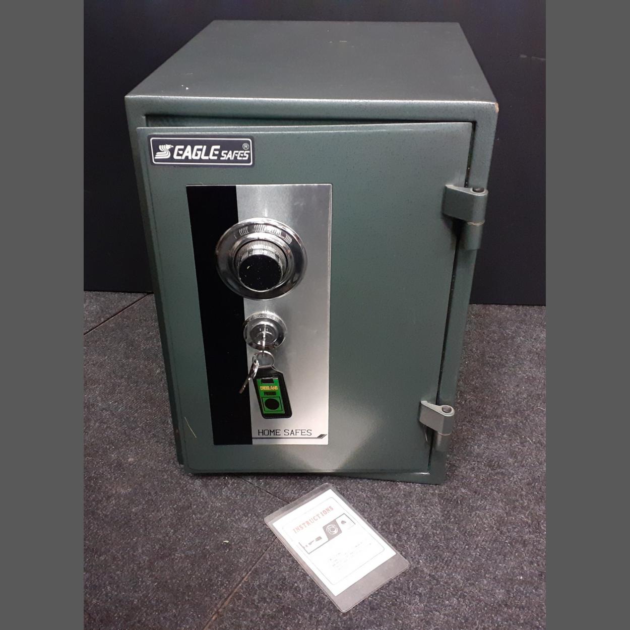 An EAGLE home safe combination with key. Supplied with combination code. Opens OK. W35 x D38 x H48cm approx