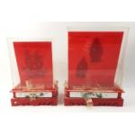 Two cased Chinese GOLDEN WEDDING 14th October 1974 displays. Containing gilt figures. Both cases with damage repairs.