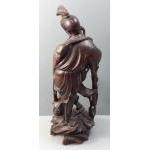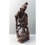 A carved wooden Oriental gentleman with crane standing 30cm tall approx