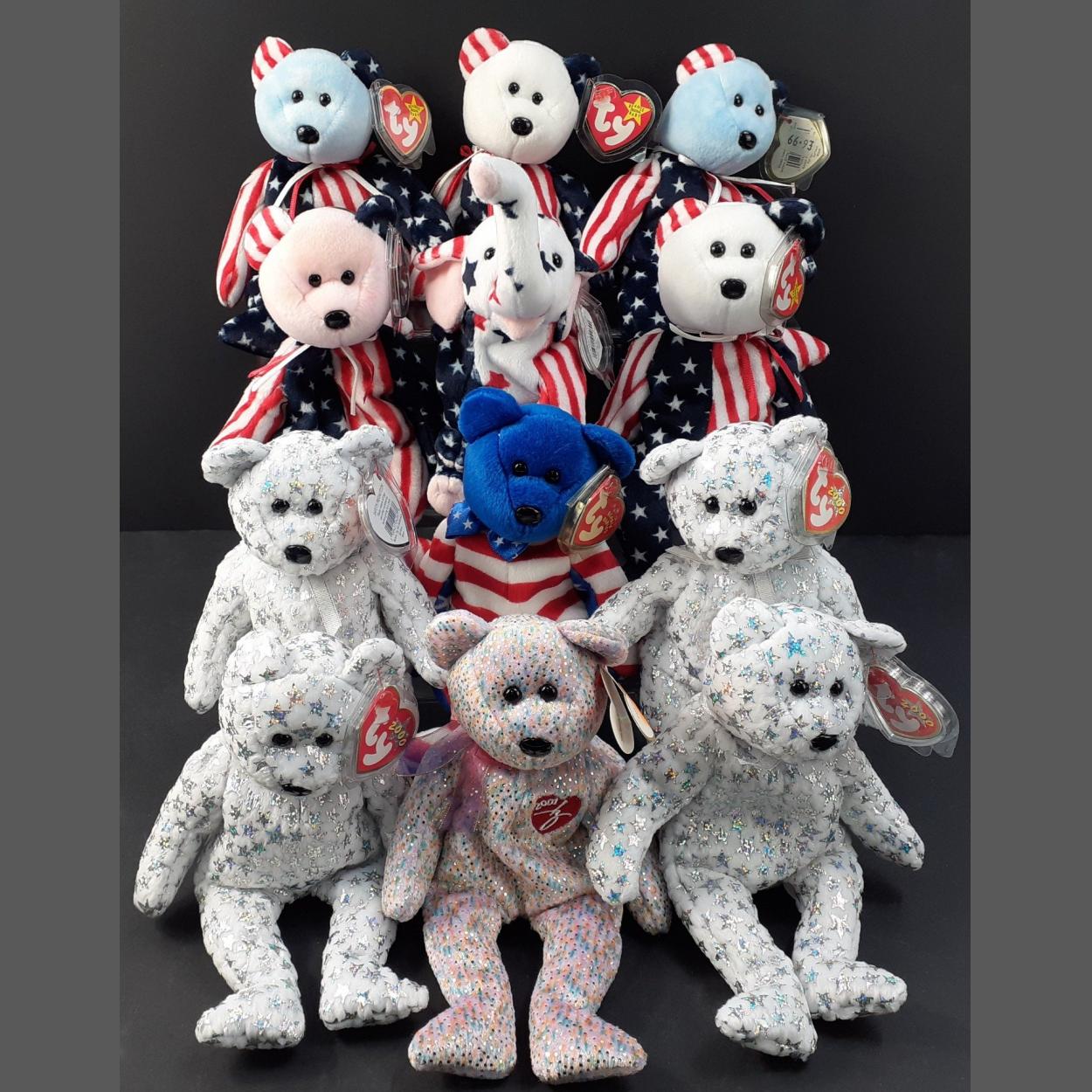 TY 2000 BEANIE BABIES to include 4 x The Beginning, a 2001 Signature Bear and an assortment of Stars and Stripes bears and an elephant