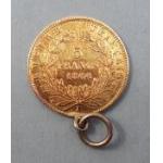 1866 Napoleon III Gold (0.900) 5 Francs. With added suspension ring and toning. 17mm 1.75g