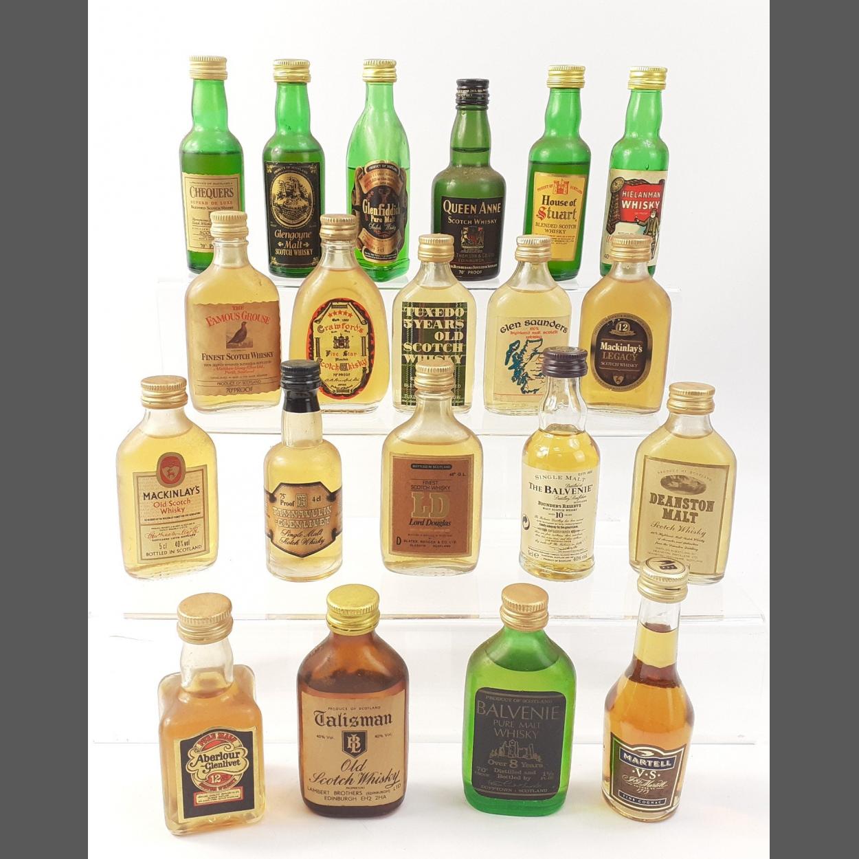 A collection of mixed miniatures to include Talisman, Balvenie, Aberlour, Balvenie, House of Stuart, Lord Douglas, Hielanman, Chequers, Glenfiddich, Mackinlays, Glen Saunders, Glengoyne, Queen Anne, Deanston Malt, Tamnavulin,