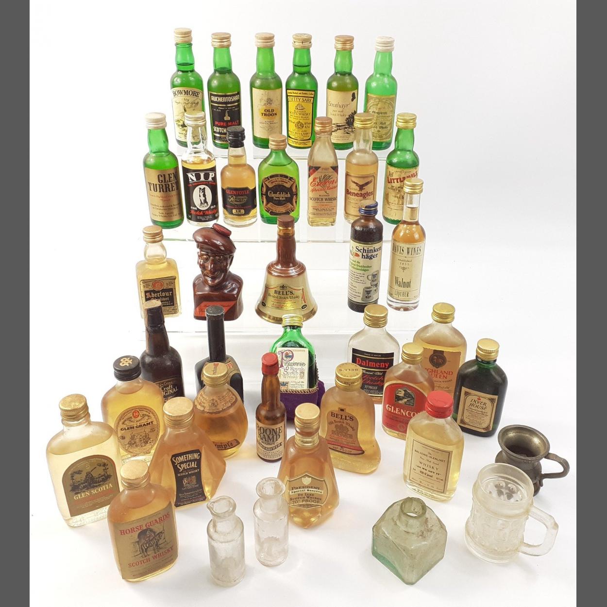 A mixed collection of whisky miniatures Glen Scotia, Horseguards, Eaton's, Glen Foyle, Cutty Sark, Akuavit Schnapps, Highway Queen, Glen Grant, Auchentoshan, Strathayr, and many, many more