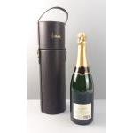 A bottle of HARRODS Champagne with a leather look bottle carrier