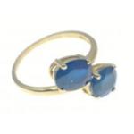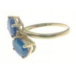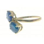A 10k stamped (9ct hallmarked) yellow gold ring set with 2 offset blue oval cut stones size M, gross weight 2.47g approx