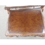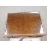 A pair of good quality solid dark wood, glass topped nested tables. The largest measures 59cm wide and 55cm high approximately. Both in good condition.