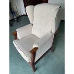 A PRISTINE winged armchair in cream fabric - this has additional removable covers for ease of washing etc