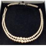 A set of GABY's double strand pearls in presentation box with silver clasp. Length 40cm approx.