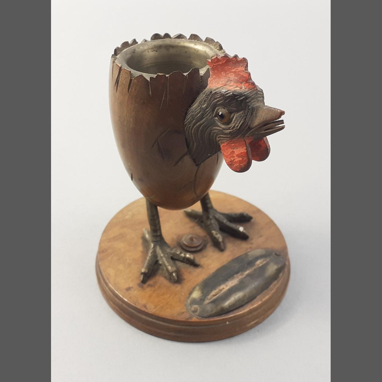 A wonderful quirky chicken treen inkwell. Stands 7.5cm approx tall.