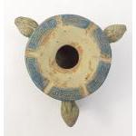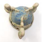 A triple headed serpentine pottery ashtray in delicate blue and green colours - stands approximately 7cm tall.