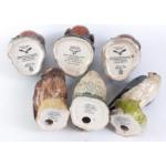 A collection of empty whisky decanters to include 2 BESWICK Beneagles golden eagles, a Whyte & Mackay ROYAL DOULTON golden eagle, a Whyte & Mackay snowy owl, tawny owl and merlin plus a cast Napoleonic eagle with damage