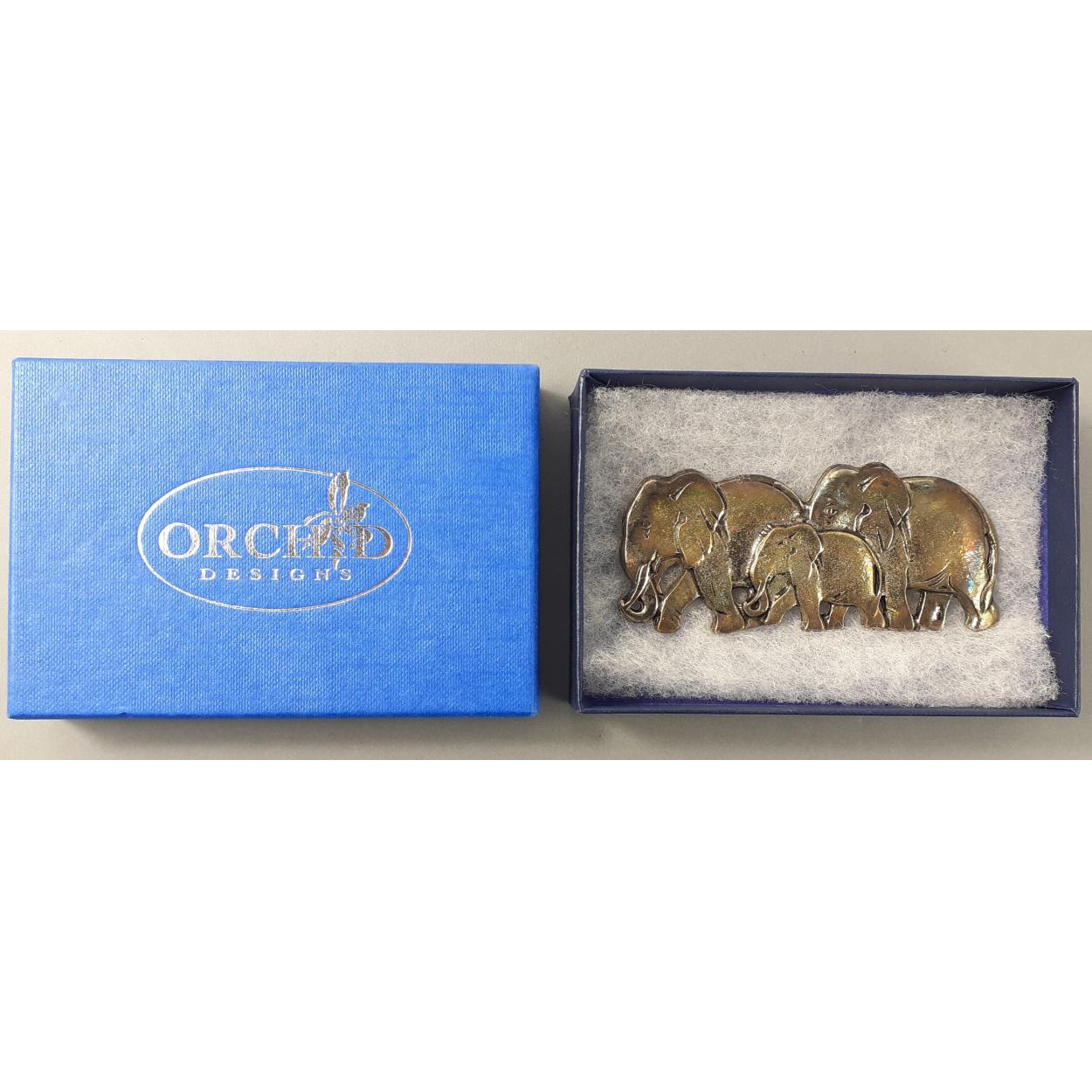 A beautiful pewter elephant family brooch 9cm across approx