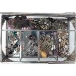A glass jewellery box with white metal corners to include contents of costume jewellery. Some very pretty pieces. 21x 13 x 10cm approx