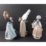 A lovely collection of 2 LLADRO and a NAO figurines including Lladro Shepherdess 1034 with tiny imperfection to fingertip (28cm), Girl with water jug and the NAO girl with rabbit