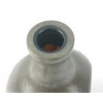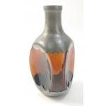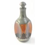 A ROYAL HOLLAND DAALDEROP amber glass and beaten pewter decanter with stopper with no damage. Stands approx 25cm high