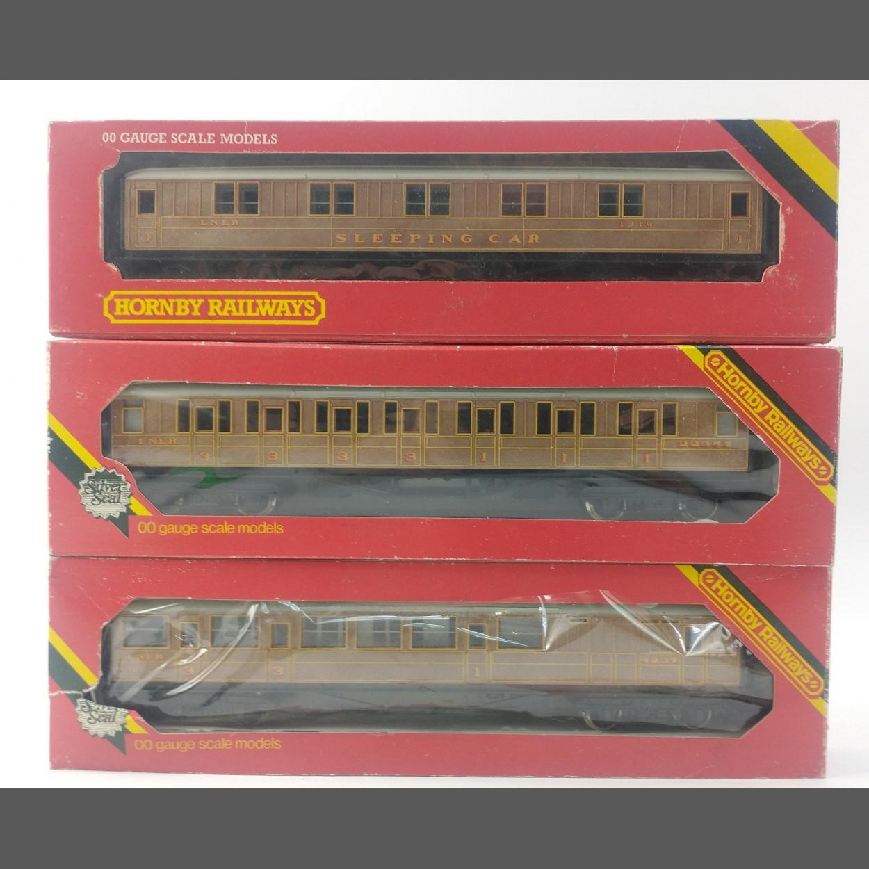 A HORNBY R.448 LNER sleeping car, an R.435 LNER coach composite and an R.436 LNER coach brake composite, all boxed