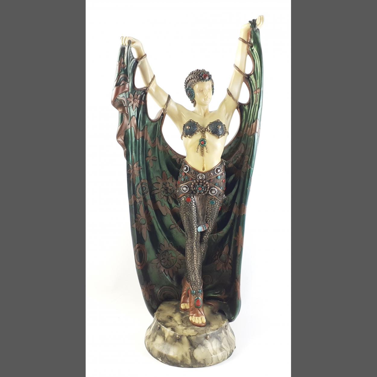A large Deco style resin figurine of an exotic dancer. Stands 60cm tall approx. No visible damage.