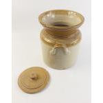 A stoneware GOVANCROFT POTTERY jar with recessed lid, some minor chips. Stands 20cm tall approx